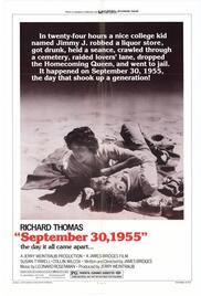 ![]() | September 30 1955 (1977) (BluRay) When Jimmy's idol, James Dean, dies on September 30, 1955, the small-town Arkansas college undergraduate goes berserk. He and his friends hold a vigil ...<more>